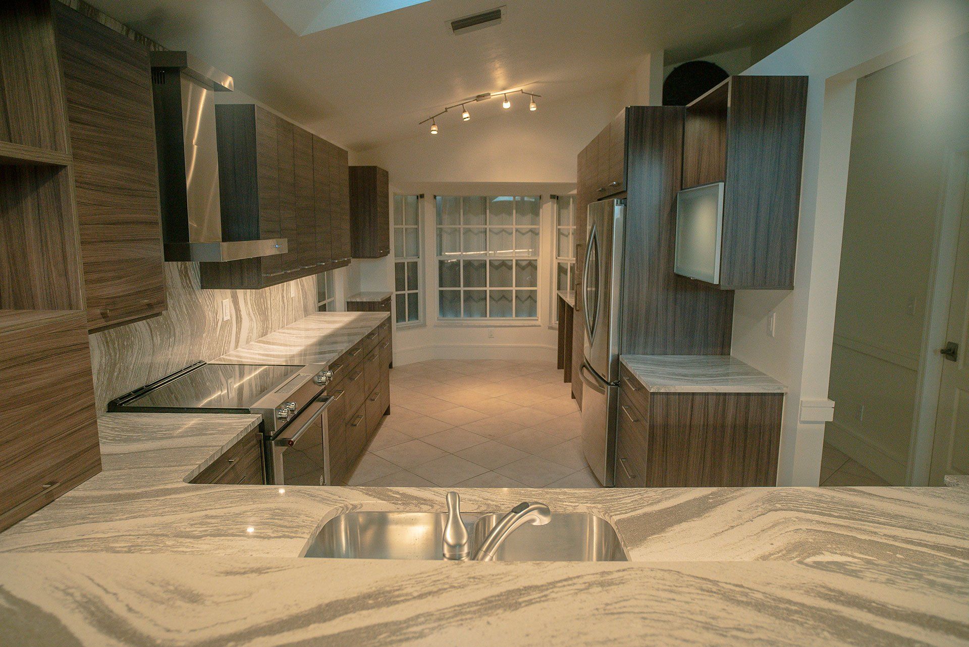 Full kitchen remodels which include cabinets, flooring, lighting and fixtures. We can turn your outdated kitchen into a modern work of art.